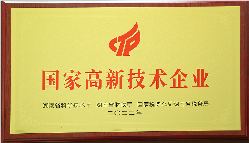 • 2023年12月被湖南省科學技術廳授予“國家高新技術企業”